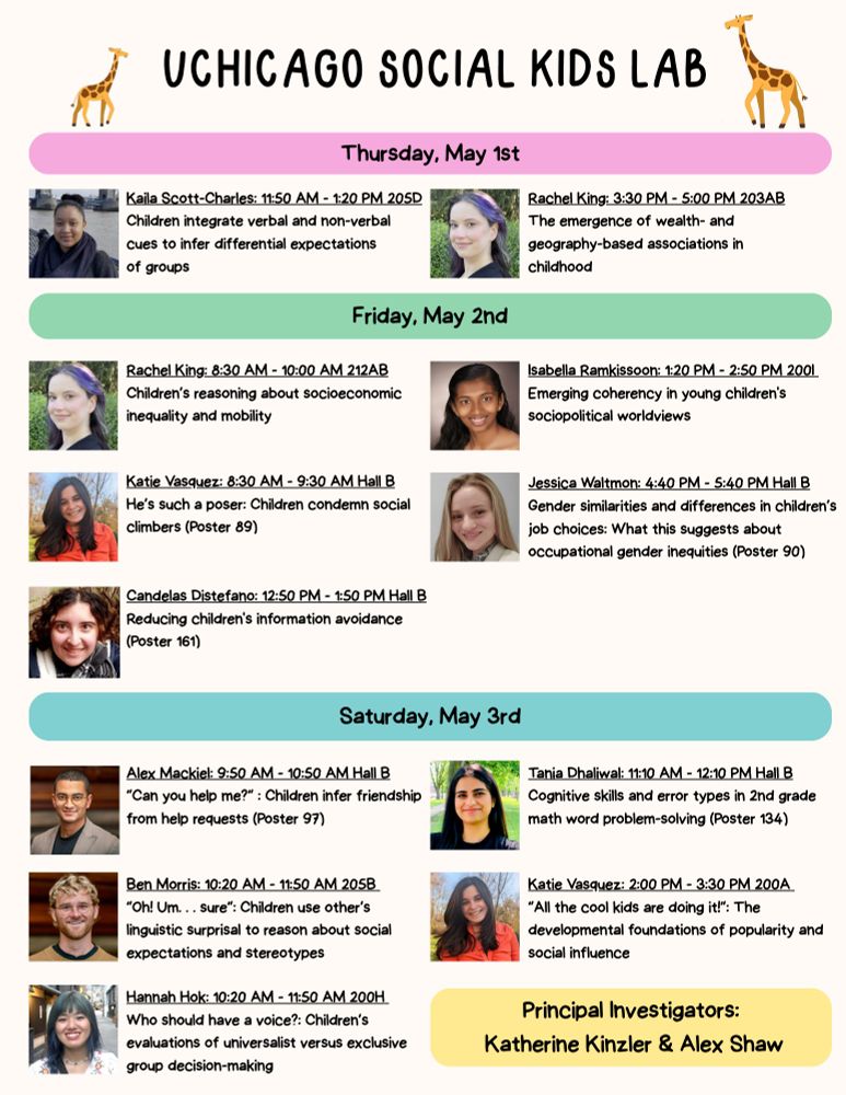 Come check out the UChicago Social Kids Lab (PIs Katherine Kinzler and Alex Shaw) at #SRCD2025. My labmates have lots of exciting projects I can't wait to watch them present.