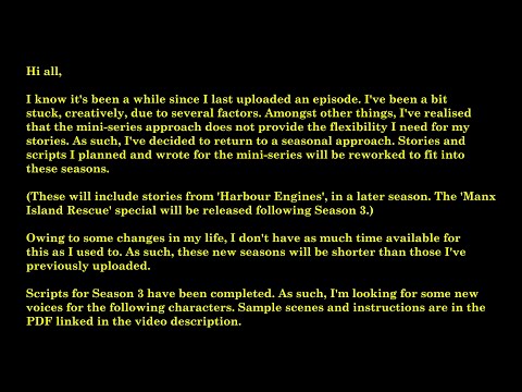I've decided to make Manx Island Rescue a post-season special. So I've now got two more episodes to write. One will be on the Arlesdale Railway, the other on the Skarloey.